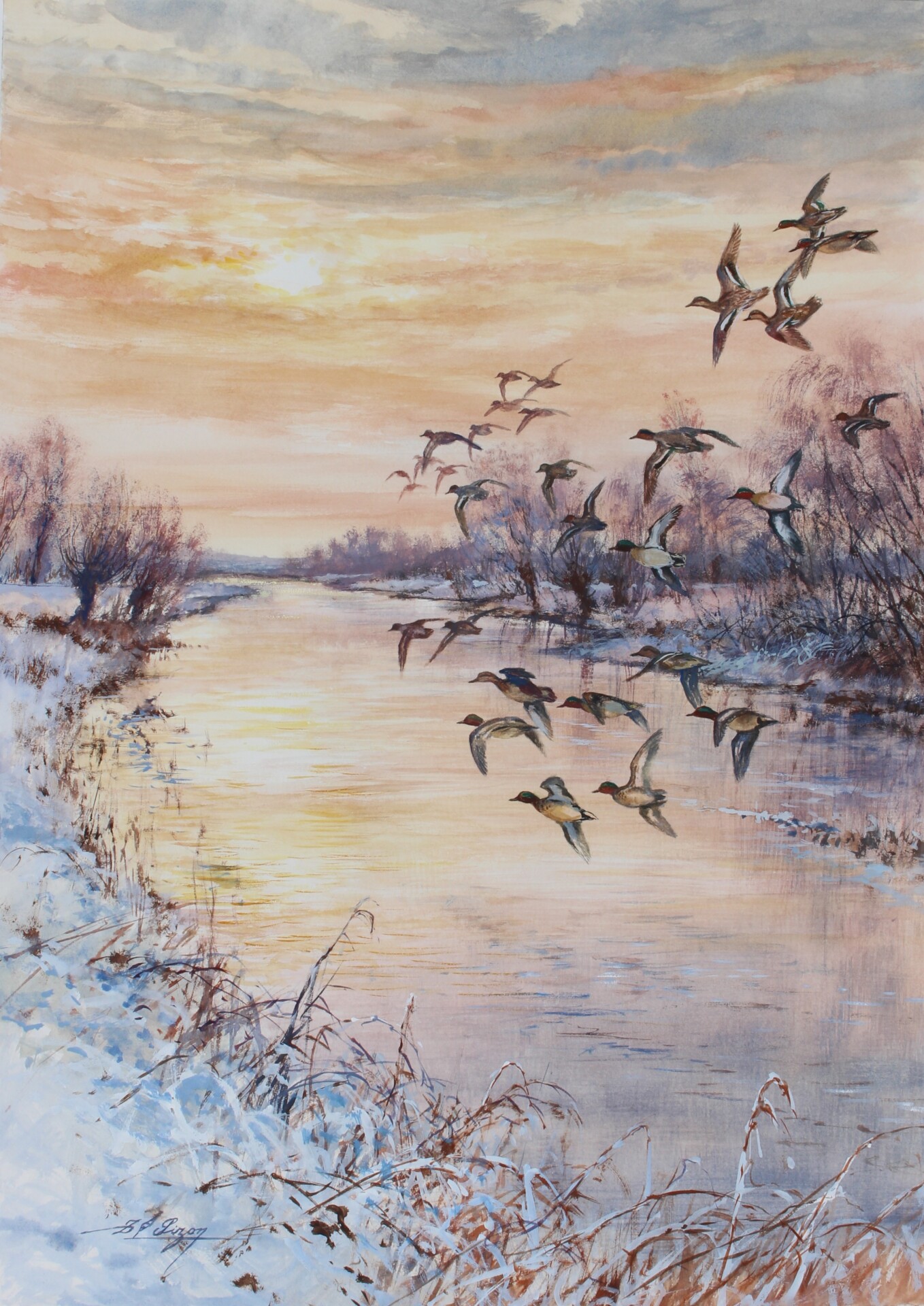 Aquarelle gouachée 27 x 38 sur papier 38 x 52 cm